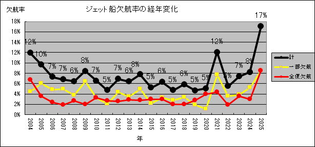 | ジェット船の欠航状況と就航予想の成績評価 2025 |