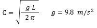 浅海波(長波)水深が波長の1/2より浅くなると波は海底の影響を受けはじめる。更に浅くなり水深が波長の1/25より浅い波を浅海波(長波)という。浅海波の波速は波長には関係なく近似的に水深h(m)だけで決まり