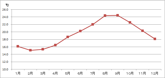 4、潮位海面の高さは、主に月と太陽の引力によって、普通1日に2回の干満を繰り返す。台風などで異常に潮位が高くなればそれは高潮だが、それら以外の潮位の変化はあるだろうか。 海水の熱膨張による変化海水温は、水の比熱が大きいために気温の変化より約1ヶ月遅れて変化し、大島付近の表面海水温は9月中旬に25℃程度、2月中旬に15℃程度となる(下図)。 |