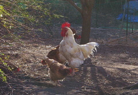 | 2020.8.13 今年3月生まれのオス鶏が成熟して、7月半ばごろから安定して時を告げるようになりました。 前回と同じようにジローと名付けて、コケコッコー第一声の観察を再開します。 |