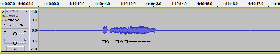一つの波形のかたまりが1回のコケコッコーに相当します。