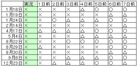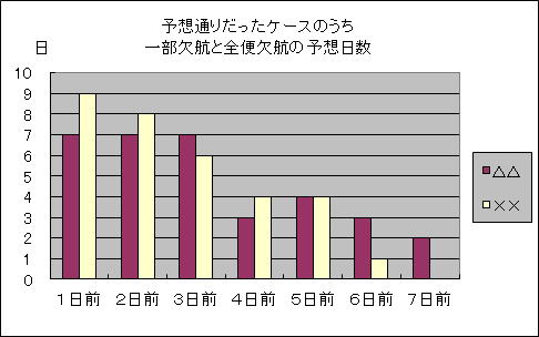 一部欠航、全便欠航を○と予想した(欠航を予想できなかった)率 |