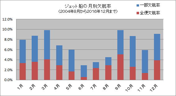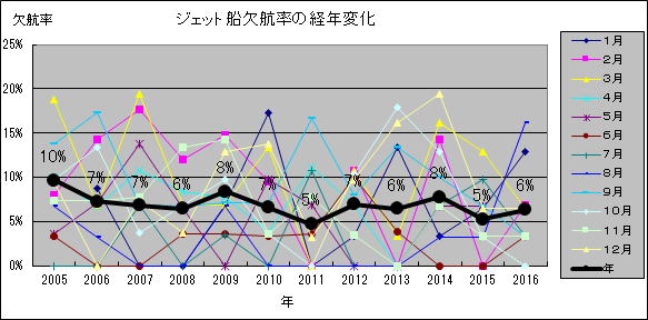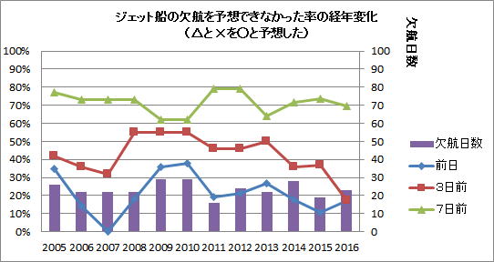 | ジェット船の欠航状況と就航予想の成績評価 2016 |