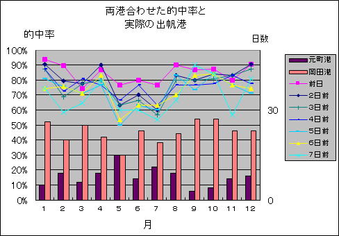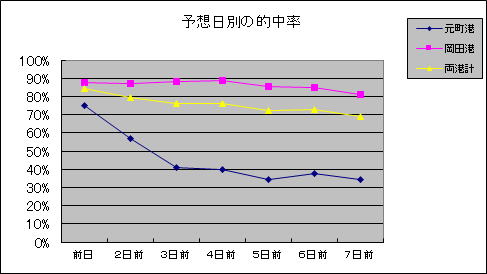 元町港・岡田港を合わせたこの期間の平均の的中率は |