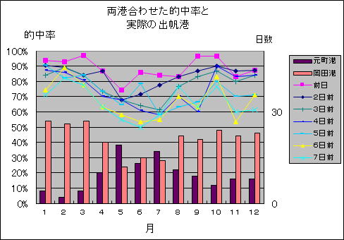 元町港・岡田港を合わせたこの期間の平均の的中率は |