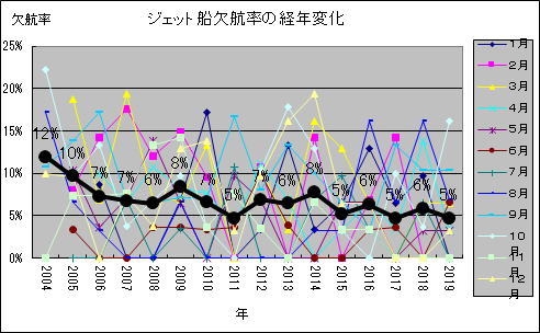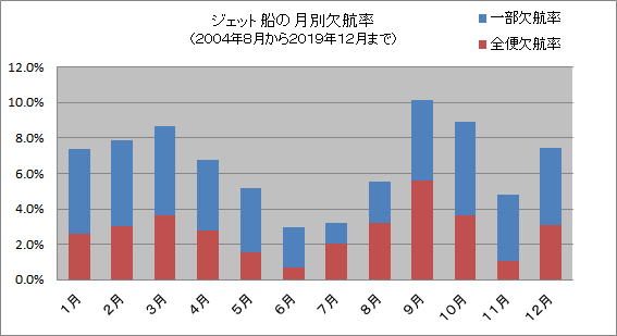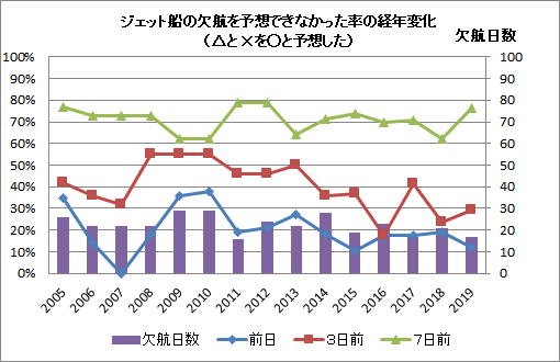 | ジェット船の欠航状況と就航予想の成績評価 2019 |