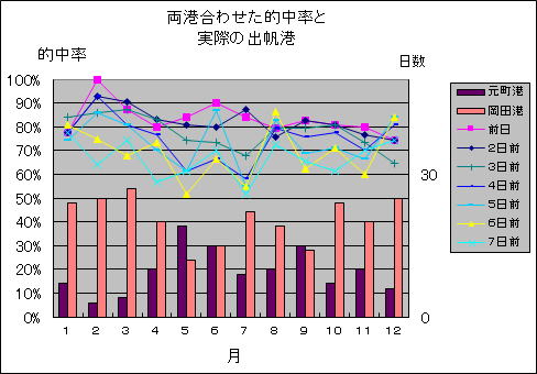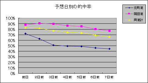 元町港・岡田港を合わせたこの期間の平均の的中率は |
