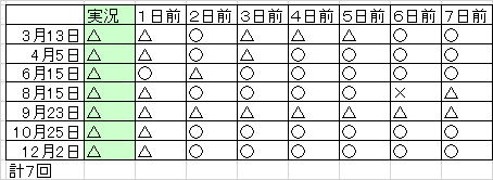 実況、全便欠航は10日 (1日前の予想で全便欠航を就航と予想したのは10月22日) |