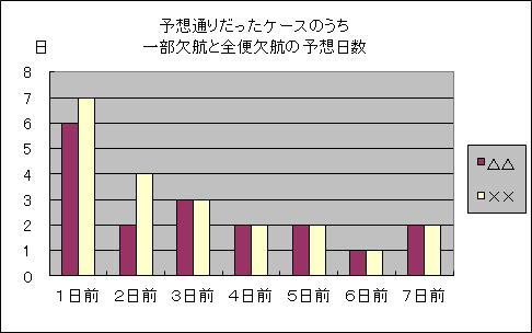 一部欠航、全便欠航を○と予想した(欠航を予想できなかった)率 |