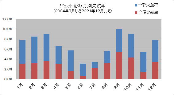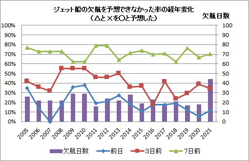 | ジェット船の欠航状況と就航予想の成績評価 2021 |