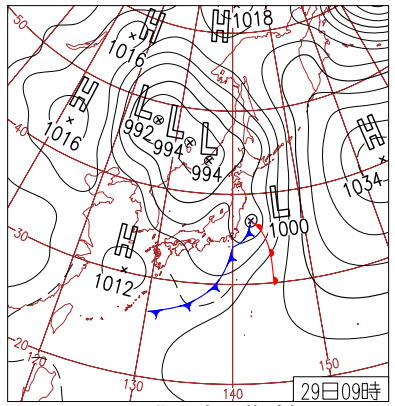| 2021年3月29日の天気図 当日の大島のアメダスデータはこちら |