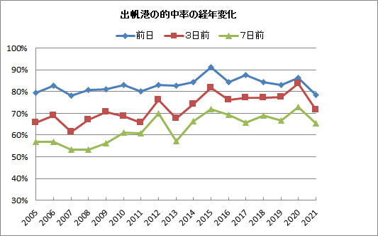 | 年間の出帆港的中率の2005年からの変化 |