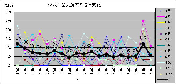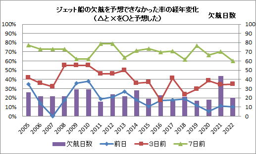 | ジェット船の欠航状況と就航予想の成績評価 2022 |
