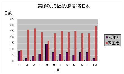 | 出帆(到着)港は季節によって大きく変化します。 年間では 元町港・・・75日 岡田港・・・275日 |