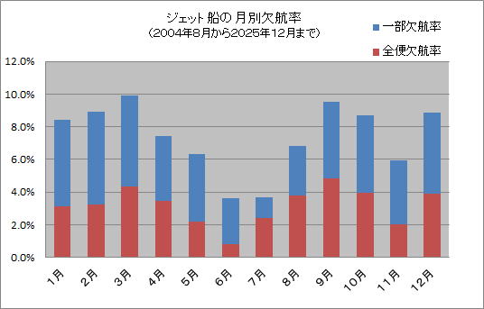 | ジェット船の欠航状況と就航予想の成績評価 2025 |
