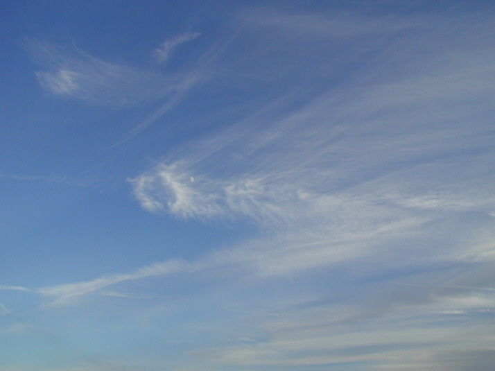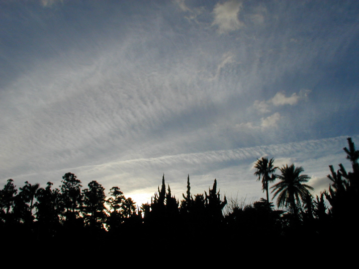 2003.12.9 7:43 大島高校前庭より南の空を望む 水平に交差するのは成長した飛行機雲